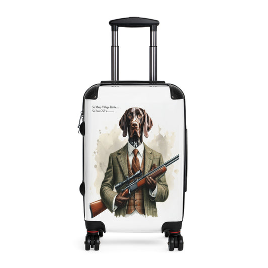 Ah, the quintessential suitcase for the discerning traveler: the “Village Idiot Deluxe.”